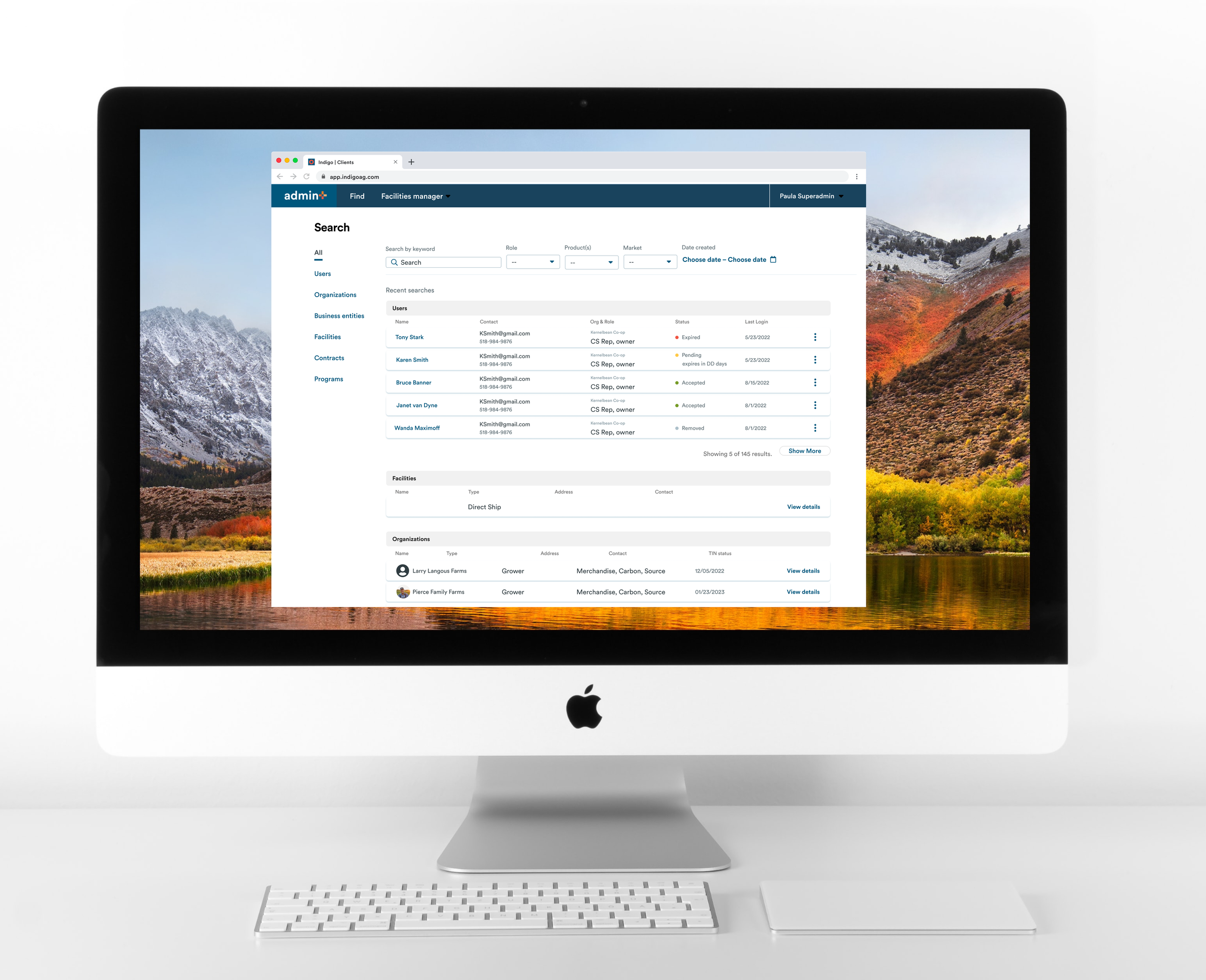 Farmers, their Agriculture Business Partners, and Indigo Ag Admins have complex jobs with a variety of overlapping tasks and goals. Our software tools aim to increase profitability for our users’ businesses by plugging in when and where they’re needed.